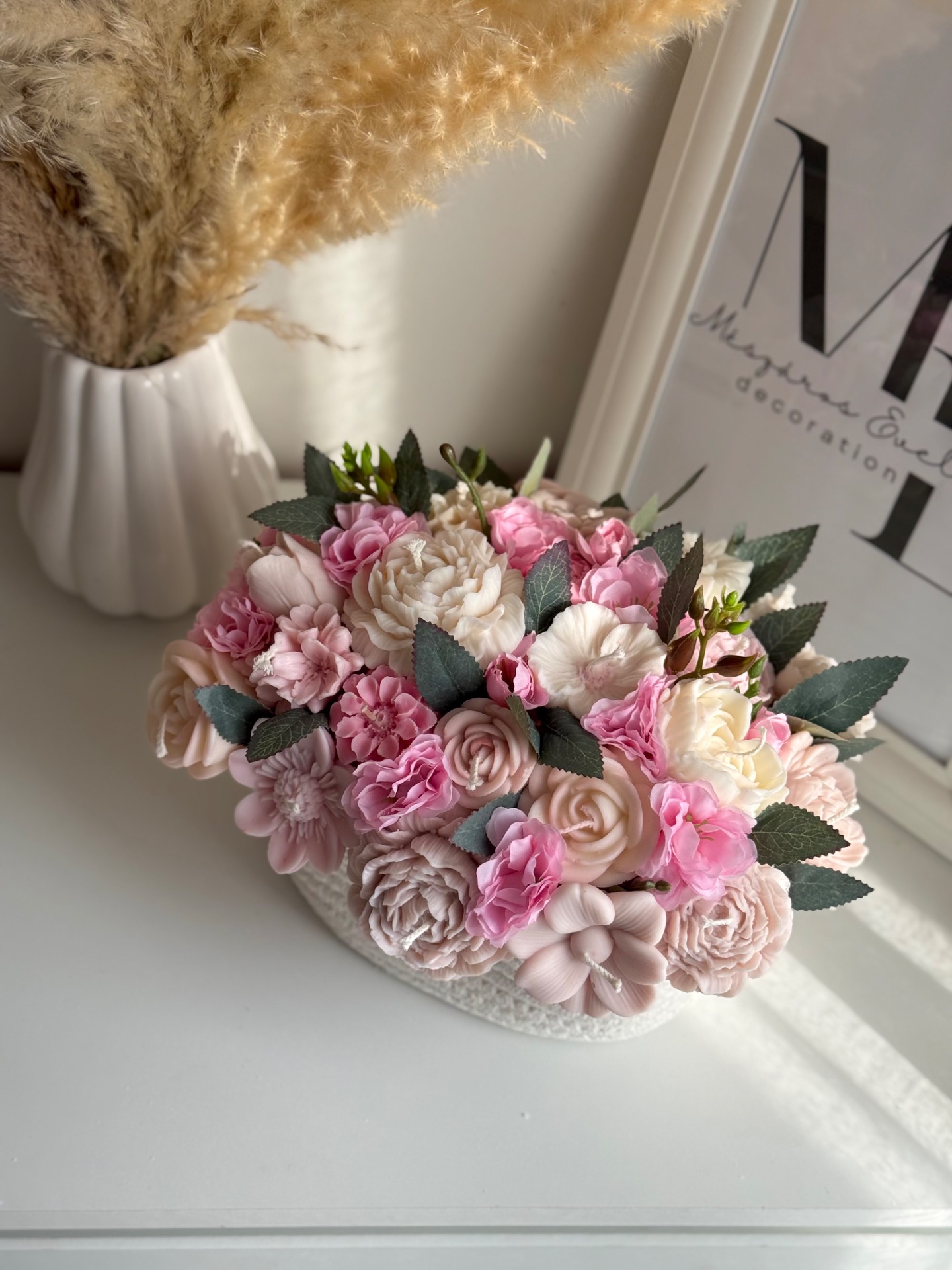 Minden kompozíció kézzel készül, így nincs két teljesen egyforma darab – ettől válik igazán különlegessé.