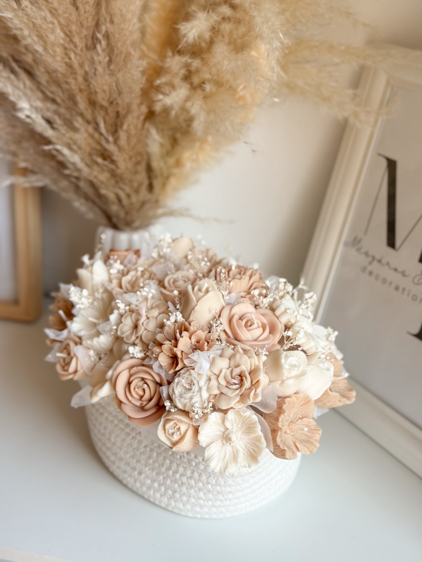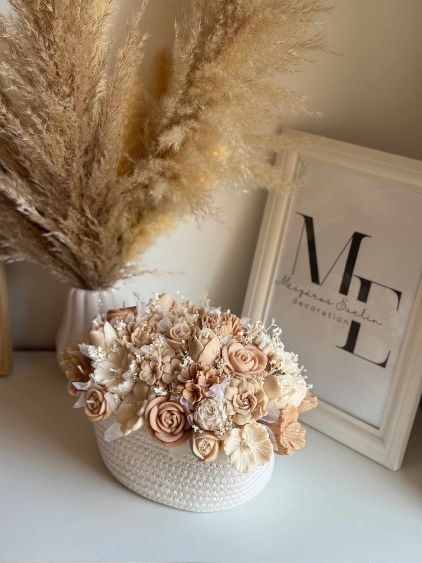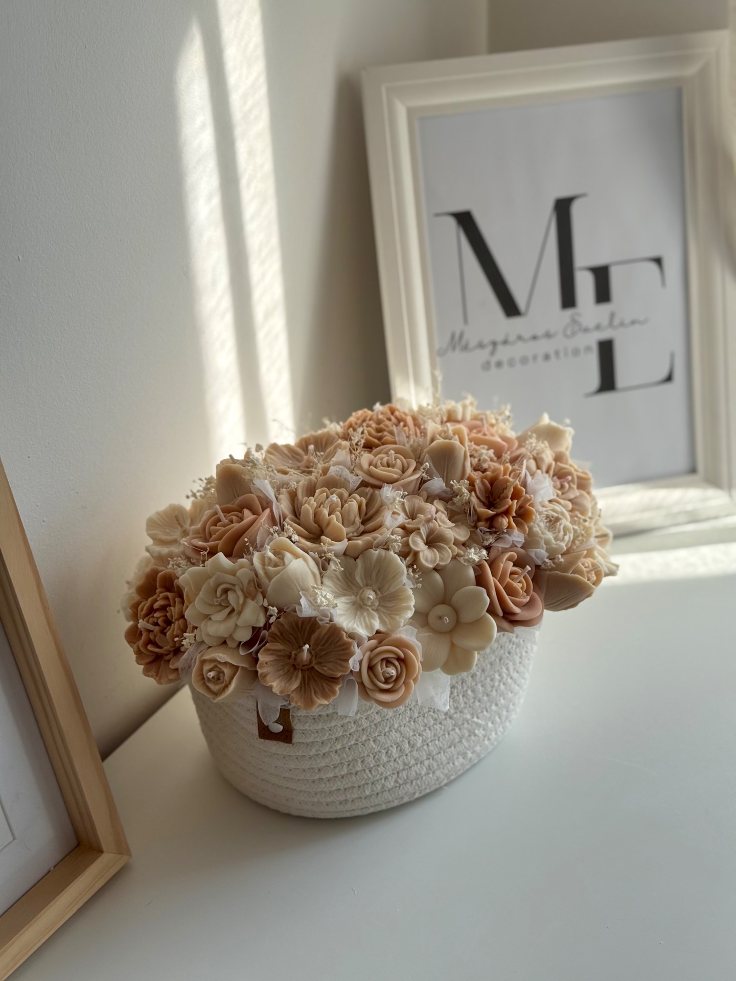 A Candle Flower Basket egy különleges, kézzel készített gyertyavirág kompozíció, amely nemcsak dekorációként, hanem élményként is jelen van az otthonodban.