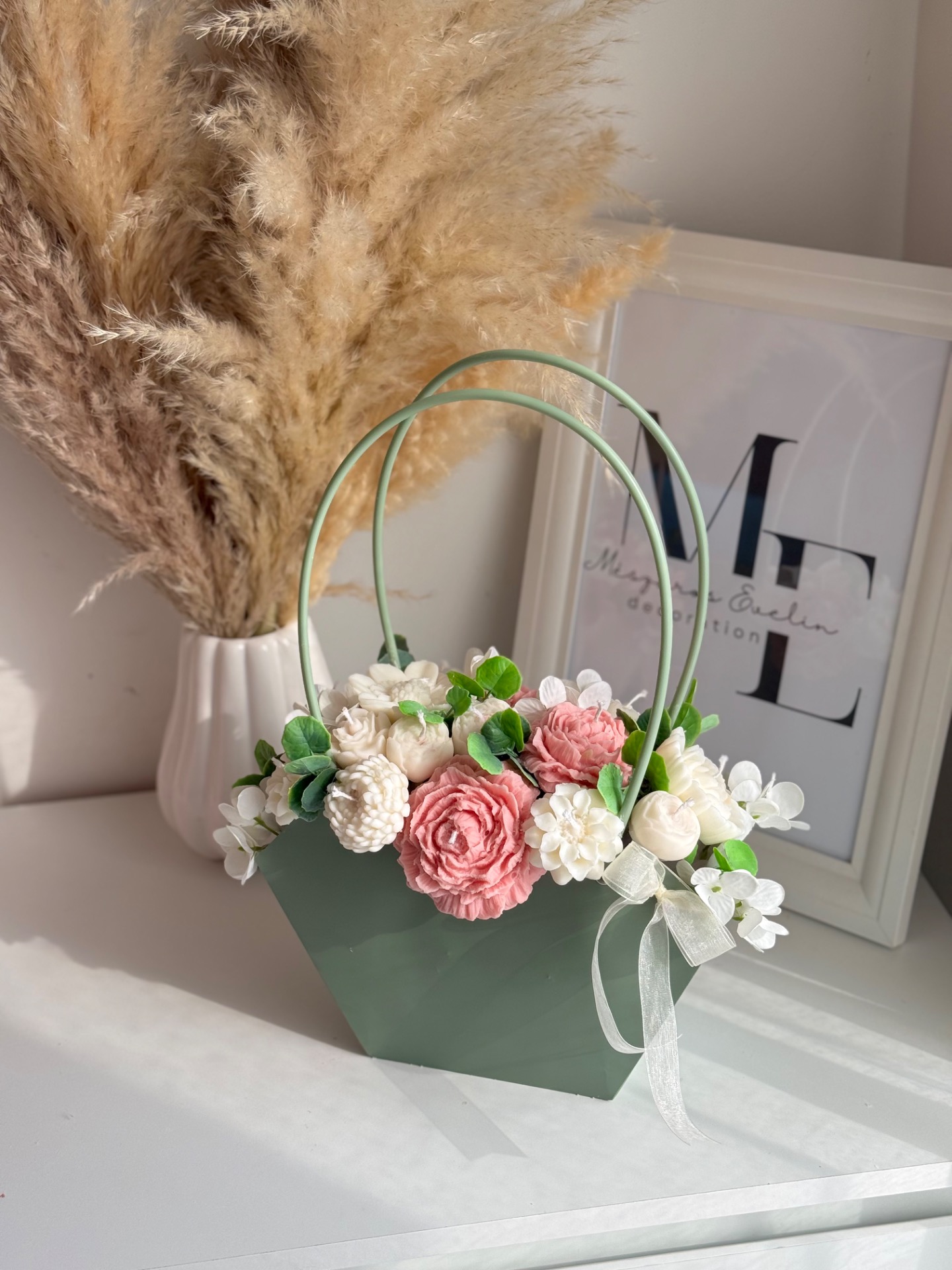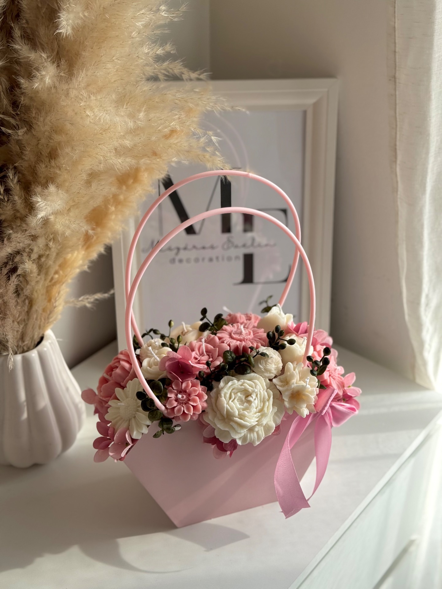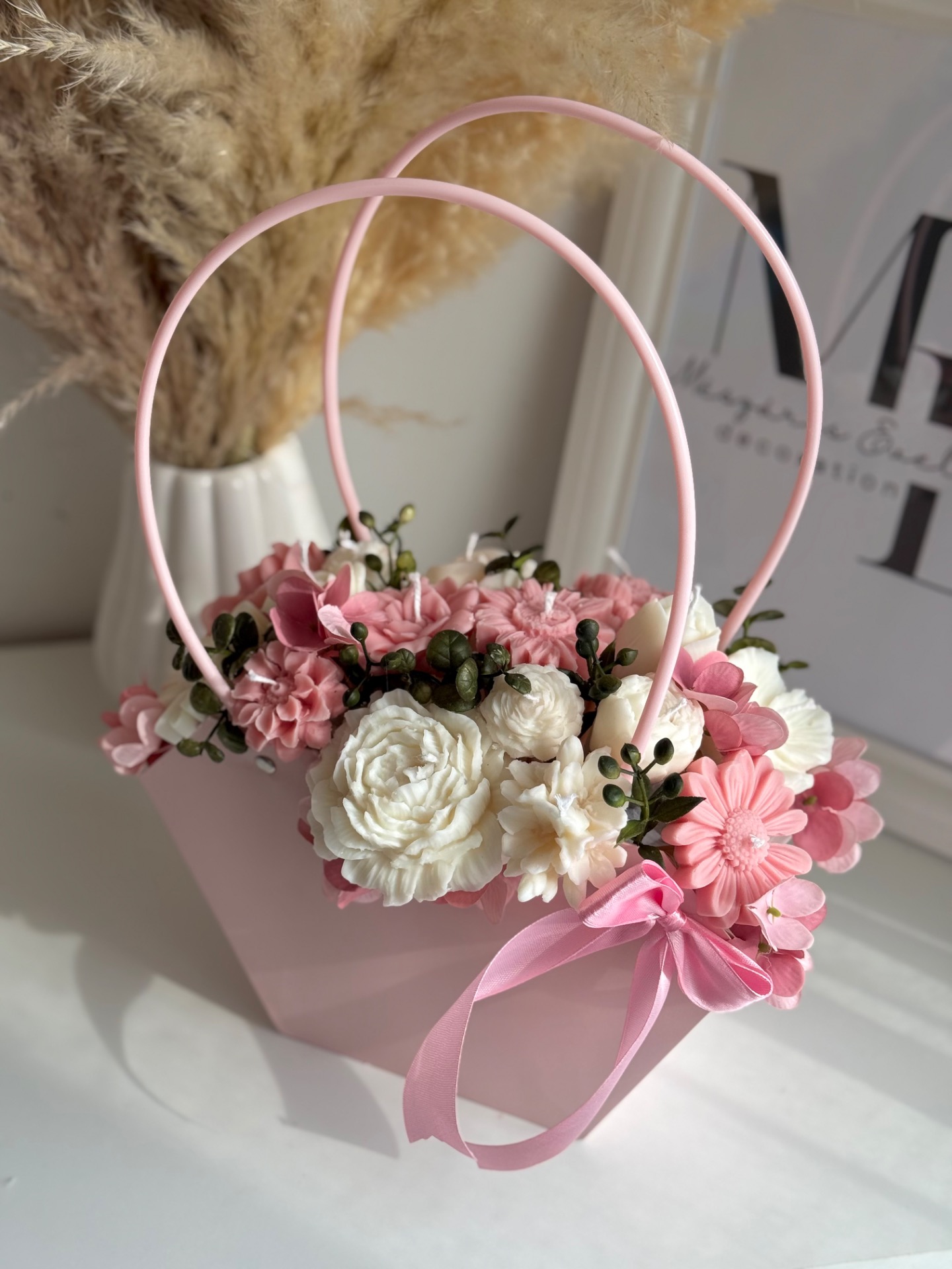 Ez a kézzel készült gyertyavirág kosár finom tulipán illattal és részletgazdag virágkompozícióval különleges hangulatot teremt az otthonodban.