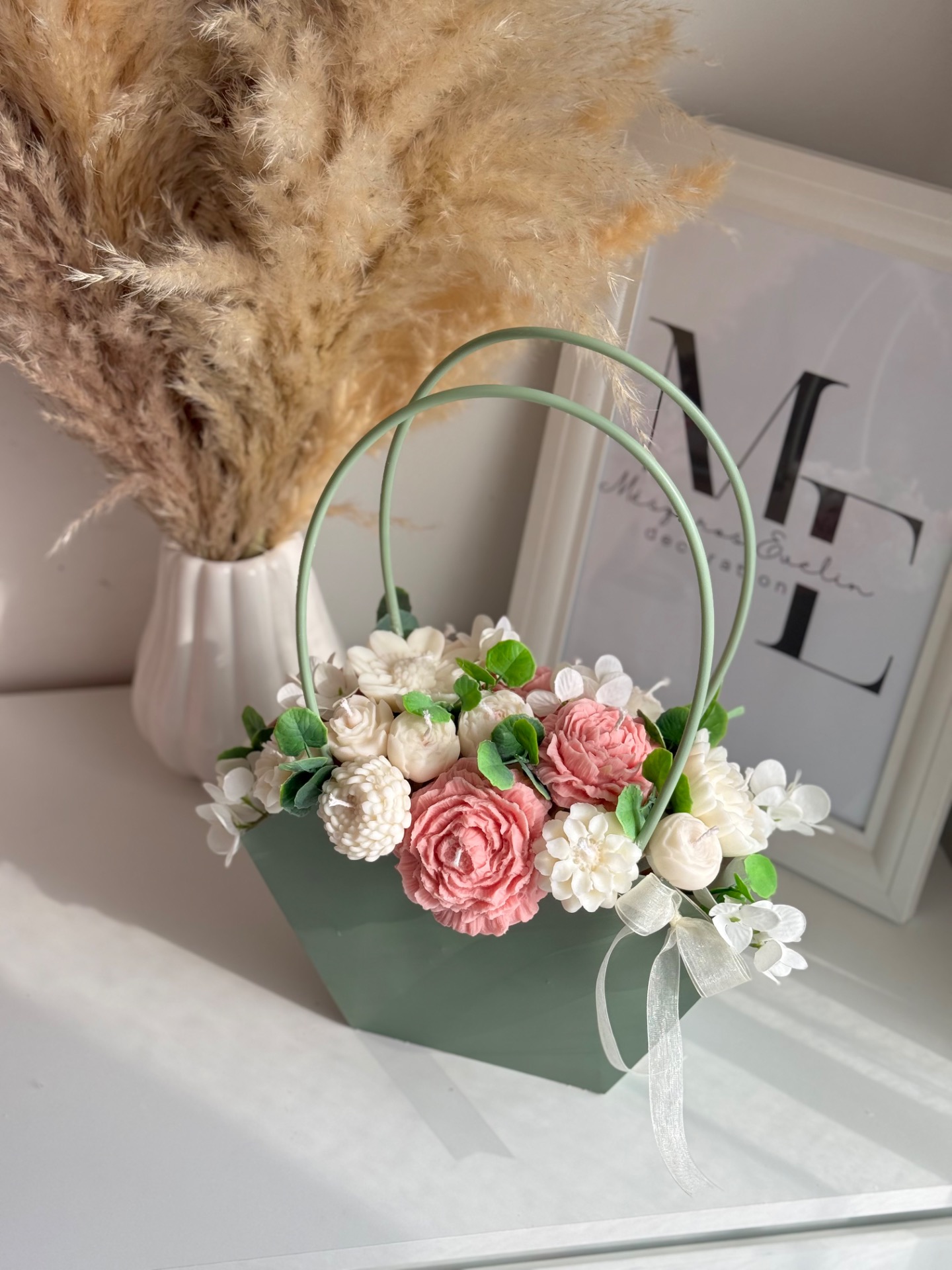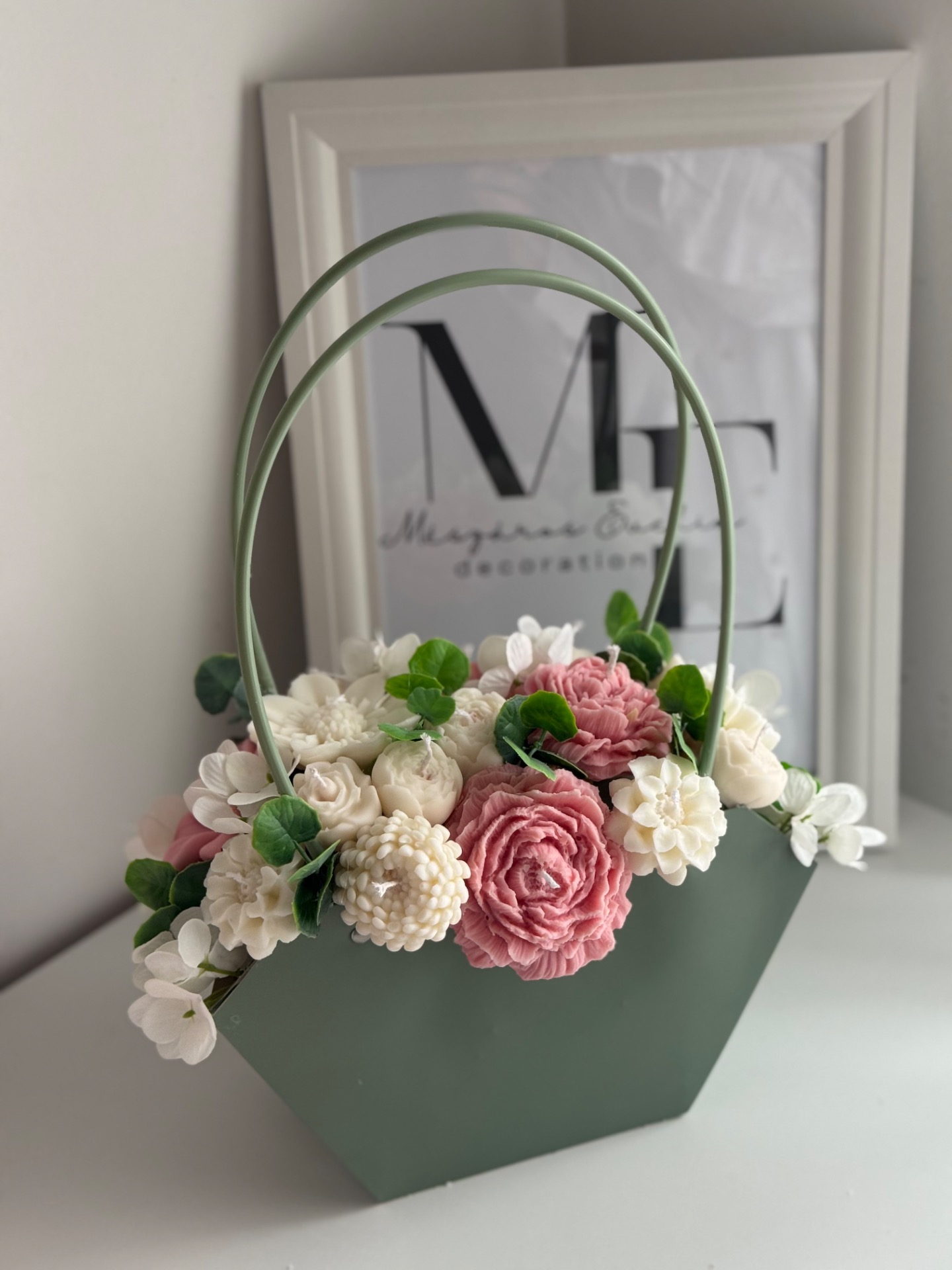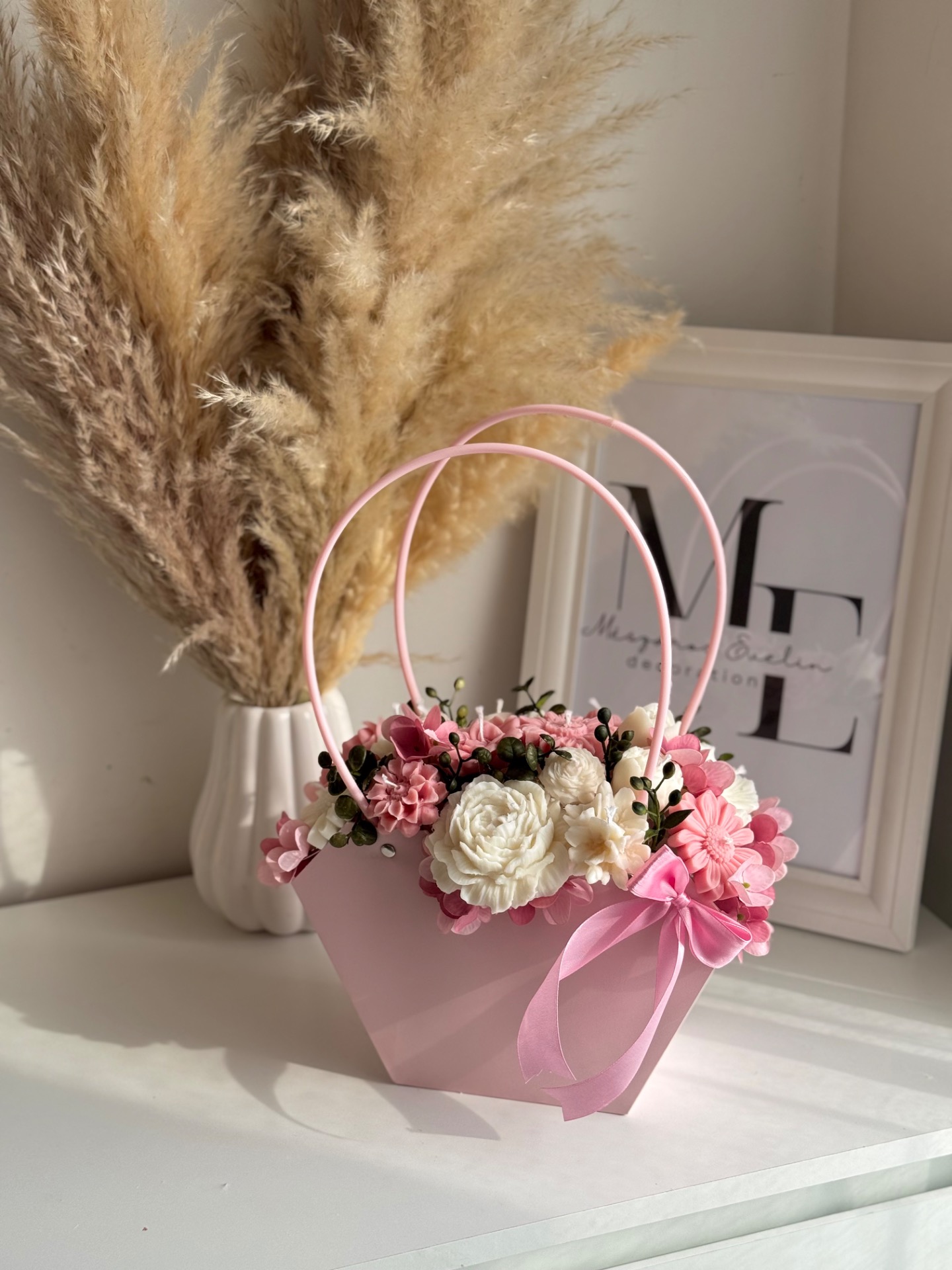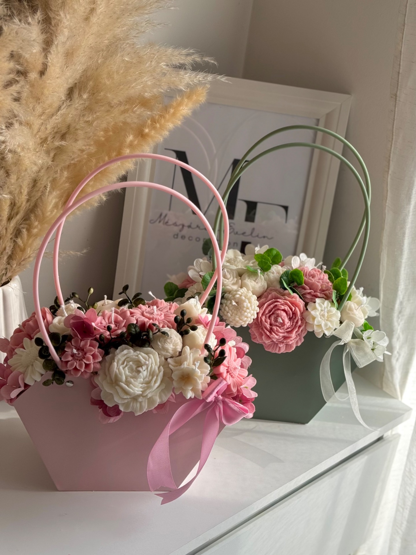 Ez a kézzel készült gyertyavirág kosár finom tulipán illattal és részletgazdag virágkompozícióval különleges hangulatot teremt az otthonodban.