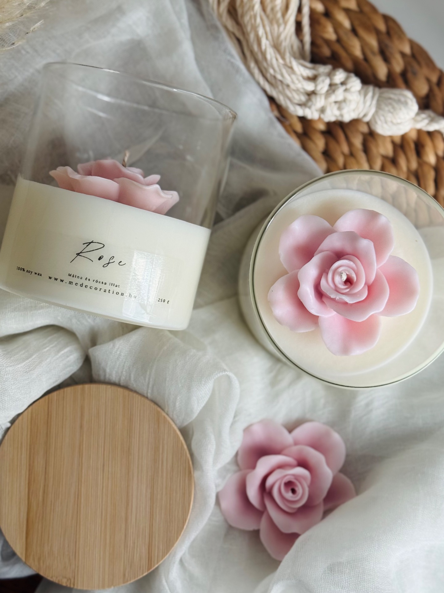 Kézzel készült, 100% szójaviasz illatgyertyák letisztult üvegben, amelyek finoman töltik meg a teret és nyugodt hangulatot teremtenek